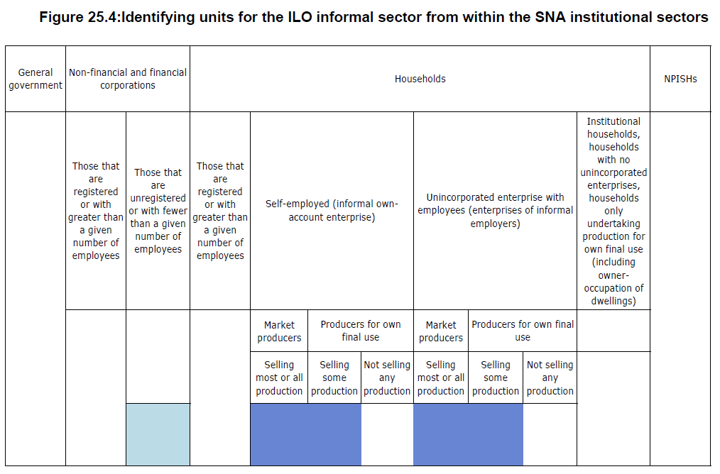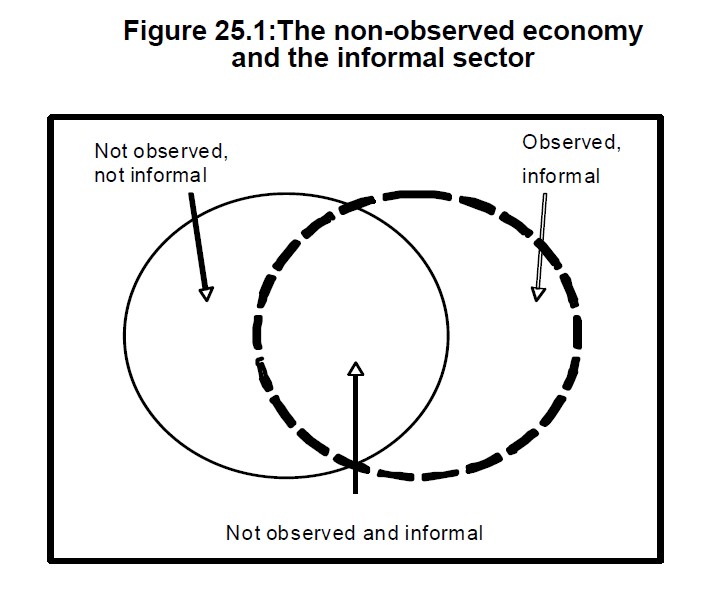 The 2008 SNA contains a chapter dedicated to the question of measuring activity carried out within households on an informal basis (the so-called informal sector) and activity that escapes formal statistical measurement (the so-called not-observed economy). ¶