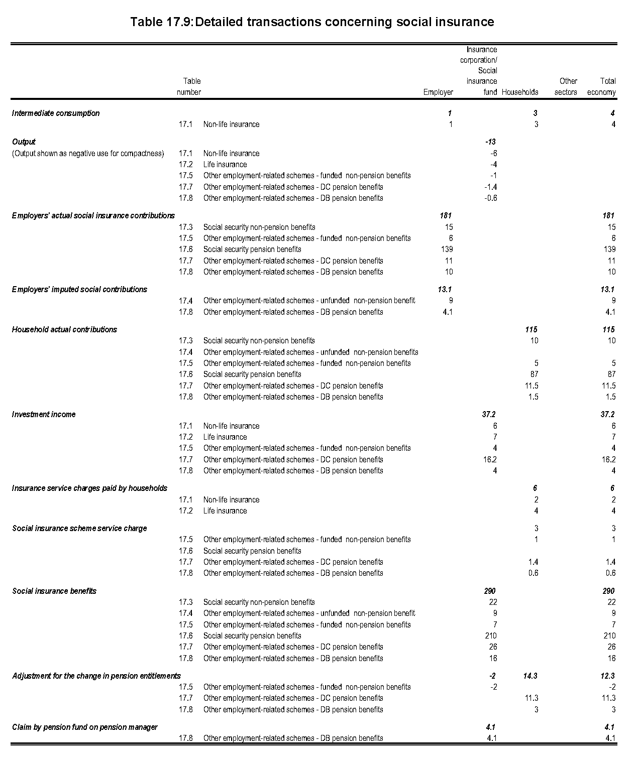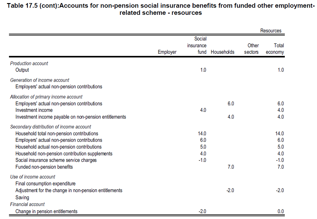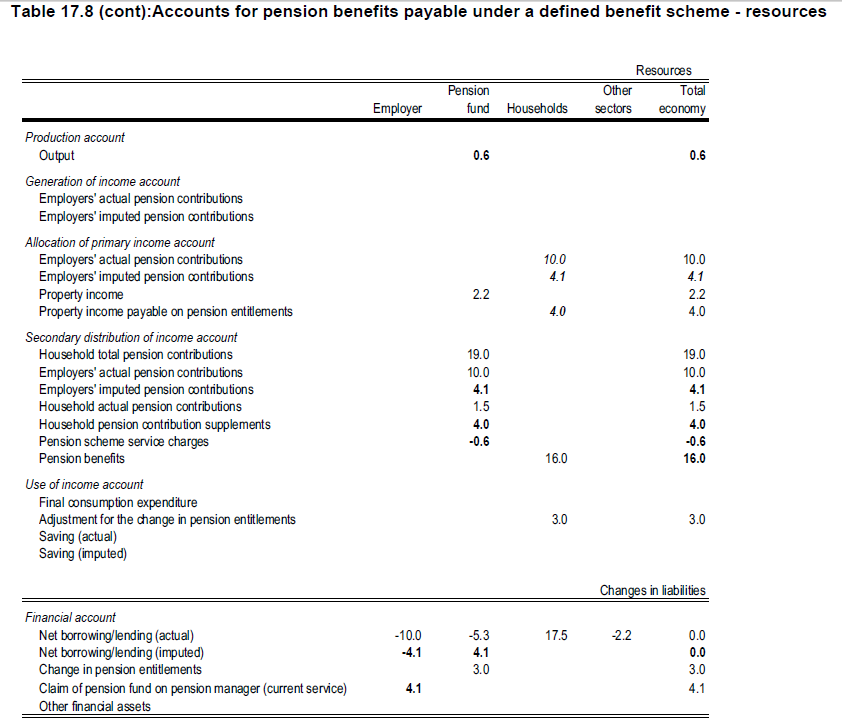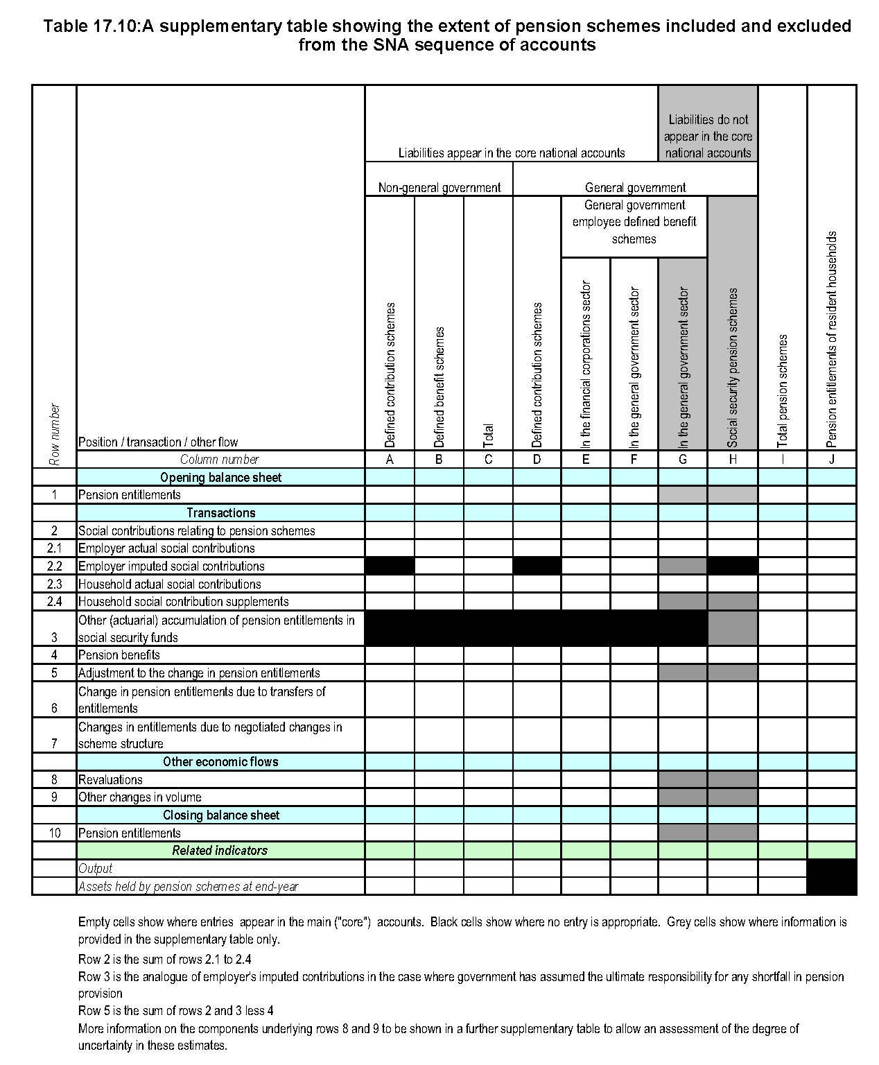 The most far-ranging change in the financial area relates to new guidelines for recording pension entitlements. The SNA now recognizes the liabilities of employers’ pension schemes, regardless of whether funding to meet them exists or not. For pensions provided by government, countries have some flexibility to deviate from this rule in the set of core tables. However, the full range of information required for a comprehensive analysis of pensions is provided in a new standard table that shows the liabilities and associated flows of all private and public pension schemes, whether funded or unfunded and including social security. ¶
