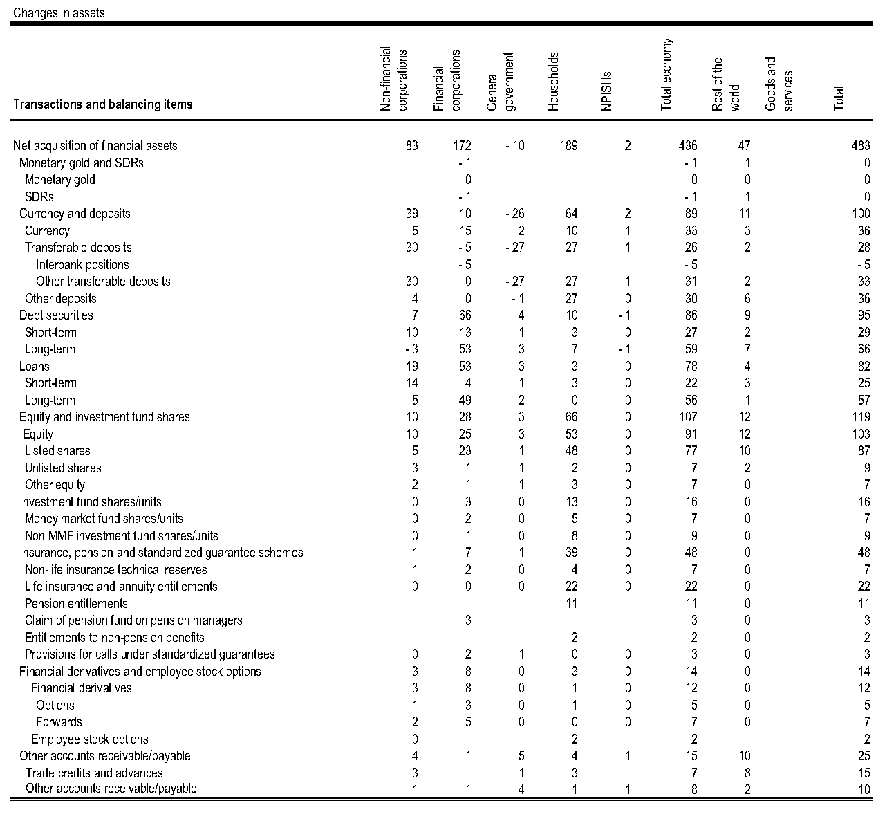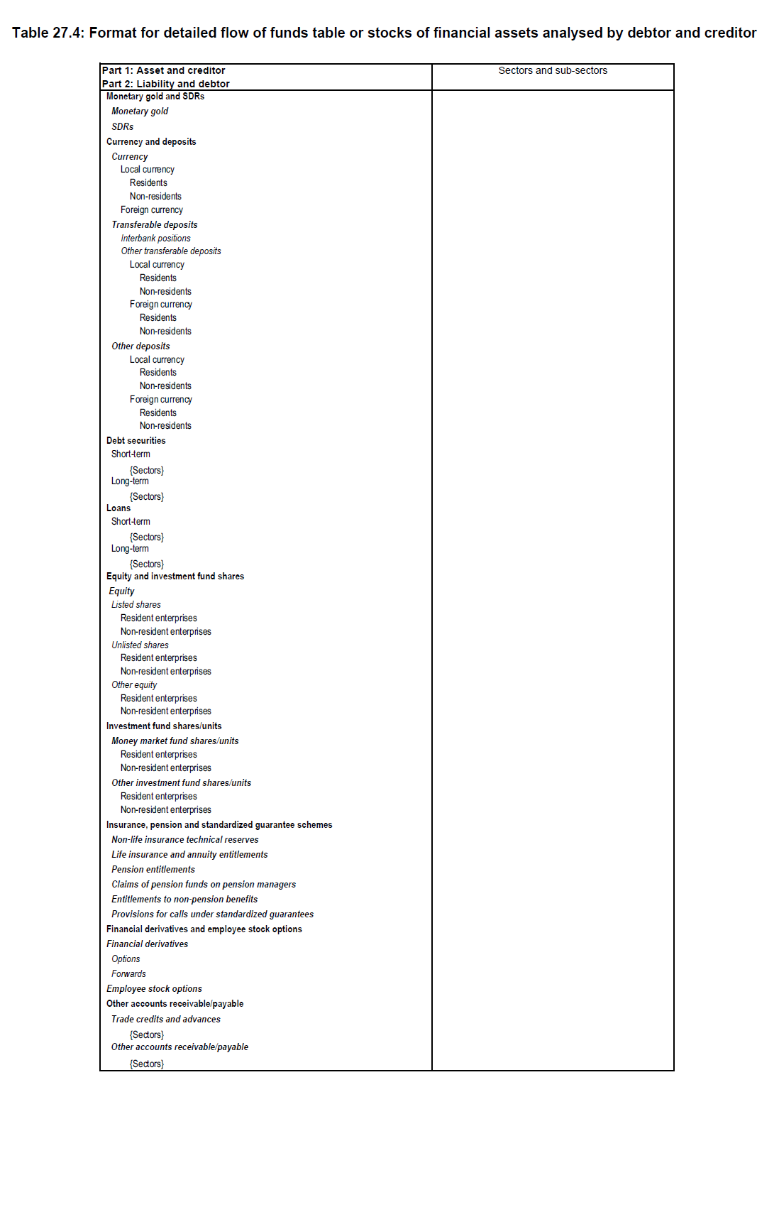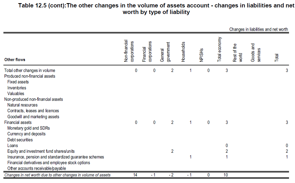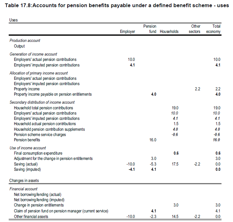 The most far-ranging change in the financial area relates to new guidelines for recording pension entitlements. The SNA now recognizes the liabilities of employers’ pension schemes, regardless of whether funding to meet them exists or not. For pensions provided by government, countries have some flexibility to deviate from this rule in the set of core tables. However, the full range of information required for a comprehensive analysis of pensions is provided in a new standard table that shows the liabilities and associated flows of all private and public pension schemes, whether funded or unfunded and including social security. ¶